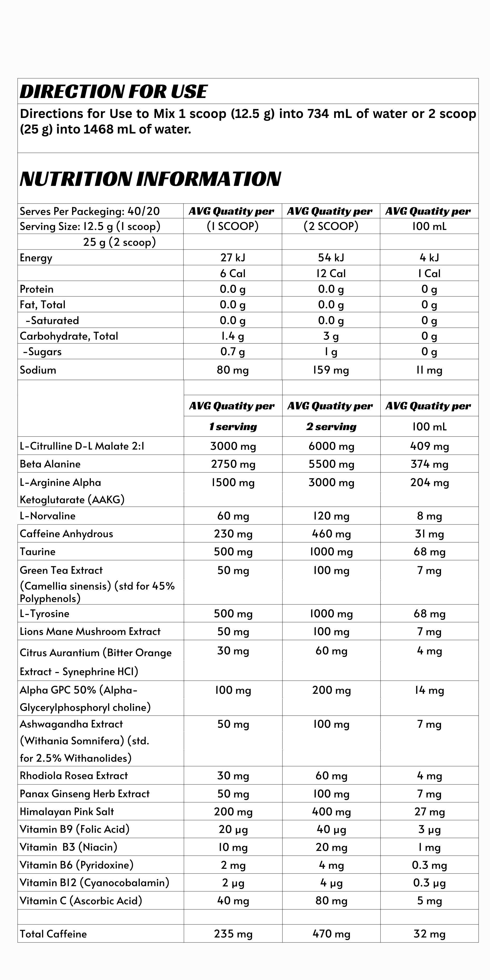Caffeine - a key in any pre-workout because it boosts energy, alertness, and focus, helping you push harder in training. It also improves strength, endurance, and reaction time, making workouts more effective.